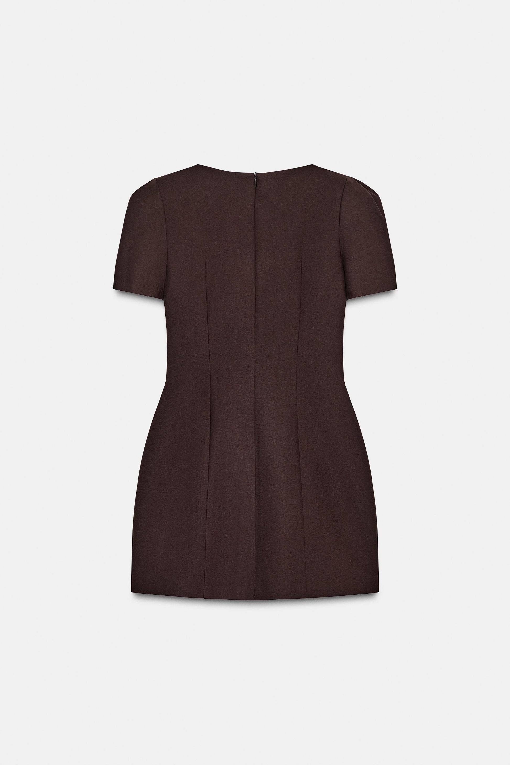 - Vestido corto de cuello barco y manga corta con pliegues